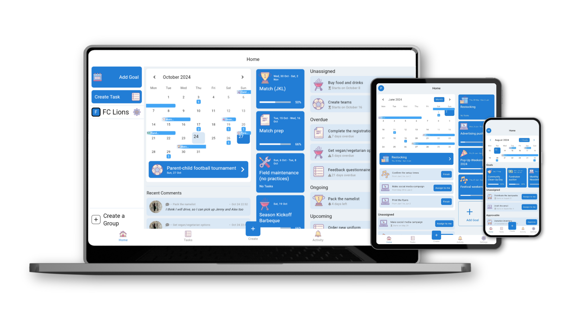 Specify goals and tasks. Have conversations. Comment, support and report, all this within the app. Communicate effectively and get things done.
